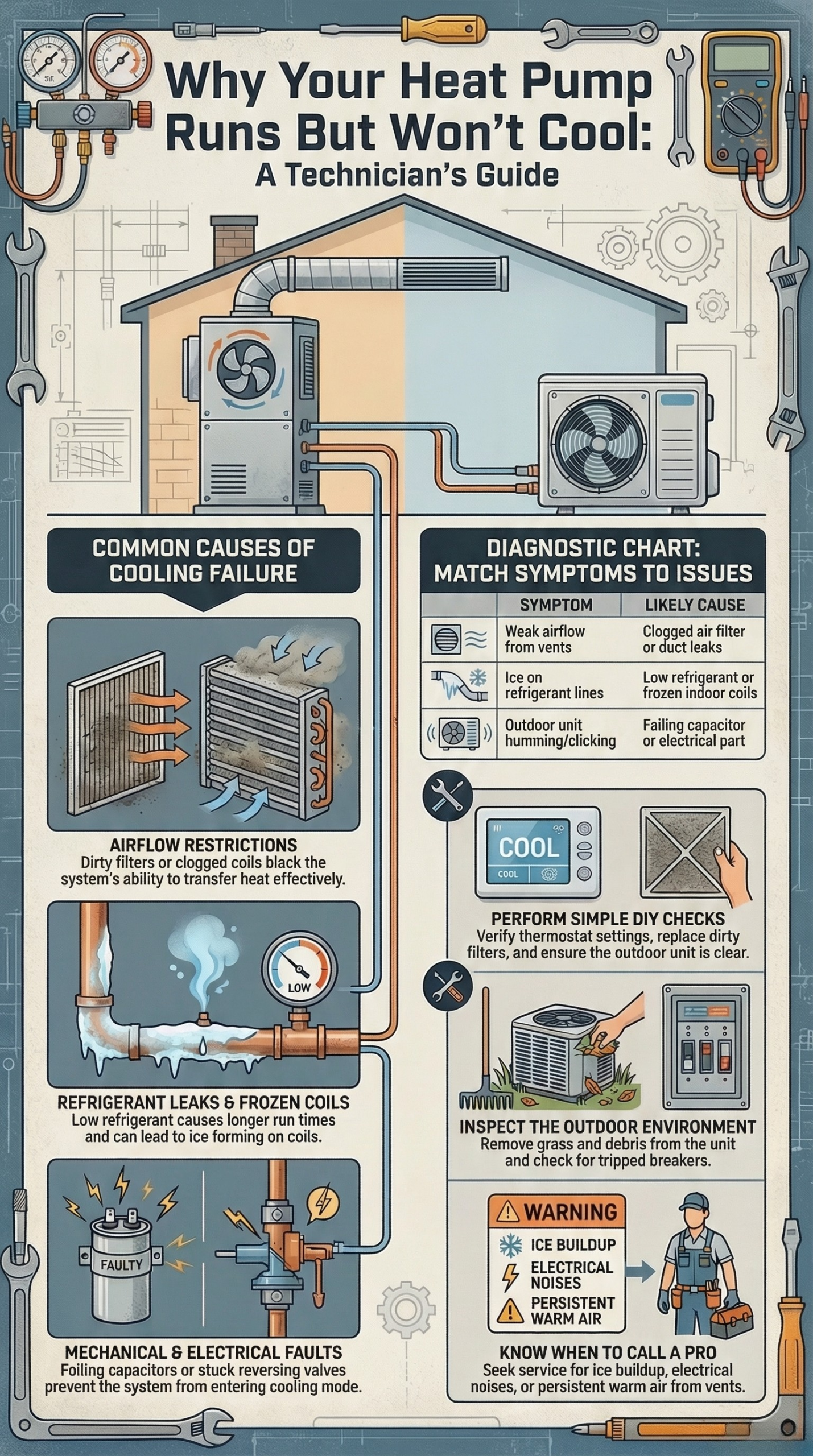 A clogged air filter is one of the most common reasons a heat pump runs but cools poorly.